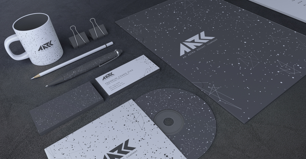 The logo design was inspired by the angular shape of the rocket's wings. The background was created with the idea of connecting the everyday person to the planets and stars in outer space, and allowing them to see cosmos as no one has before.